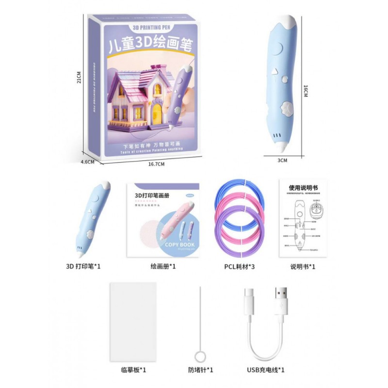3D ручка Blue, у комплекті з пластиком 3 кольорів, іграшка для творчості