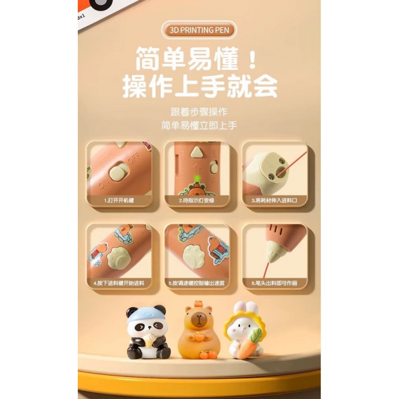 3D ручка Myriwell RP800A в комплекті з пластиком 3-х кольорів, бежева