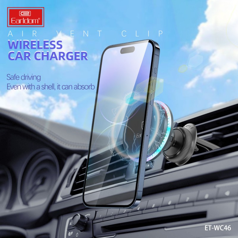Автомобільний тримач магнітний з бездротовою зарядкою 15W Earldom ET-WC46, ABS, силікон