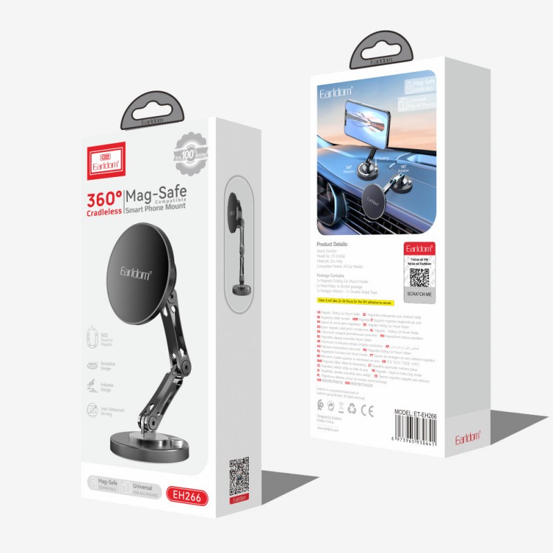 Автотримач магнітний на присосці Earldom ET-EH266, для смартфонів, кріплення на лобове скло, 360 градусів обертання