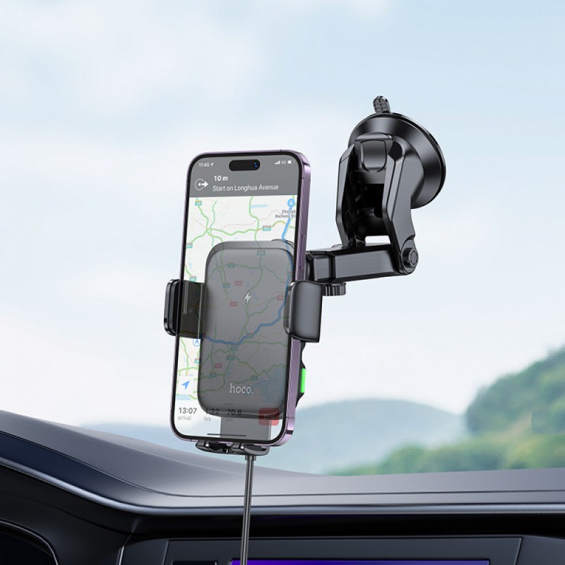 Автотримач Hoco HW11 на присосці з бездротовою зарядкою 15W