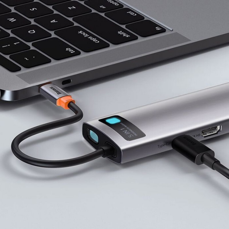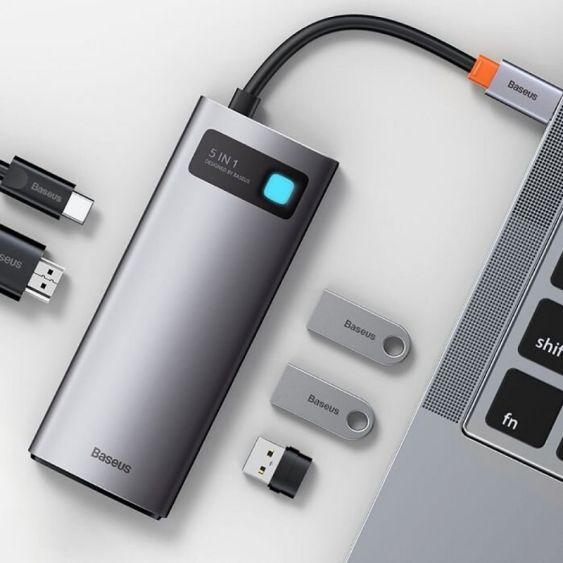 Type-C HUB Baseus Metal Gleam Series 5 in 1 Multifunctional (WKWG020013) є ідеальним рішенням для користувачів сучасних гаджетів. Хаб оснащений 4 портами USB-A 3.0 і HDMI, що дозволяє швидко і зручно підключати кілька пристроїв одночасно. Стильний металевий корпус забезпечує довговічність і сучасний дизайн.