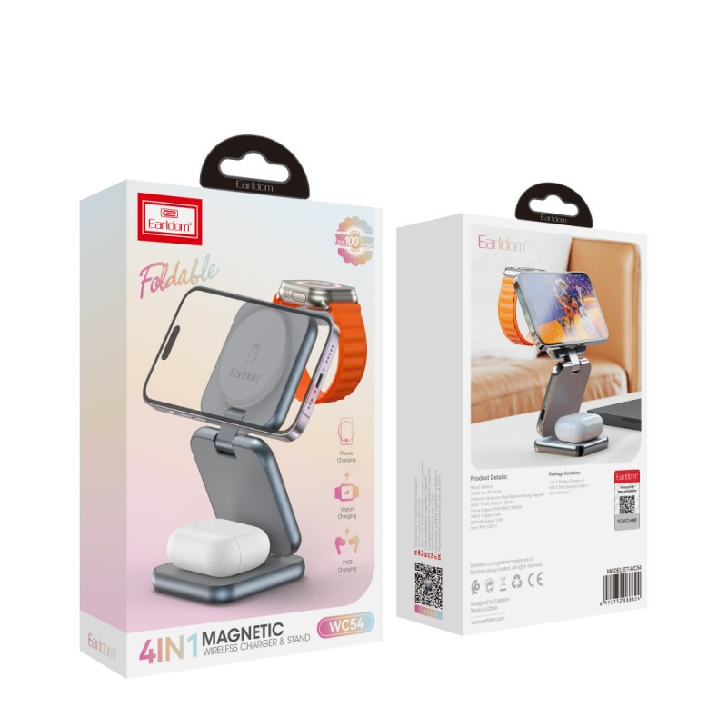 Бездротовий зарядний пристрій Earldom ET-WC54 пропонує зручний та швидкий спосіб заряджання ваших пристроїв. Виготовлений з ABS та алюмінієвого сплаву, цей пристрій забезпечує надійність та довговічність. Сумісний зі стандартом WPC Qi V1.2, він підтримує входи QC3.0 та PD 18 Вт через Type-C, а вихідна потужність варіюється від 5 Вт до 15 Вт, що дозволяє заряджати різні пристрої, включаючи годинники та навушники Airpod.