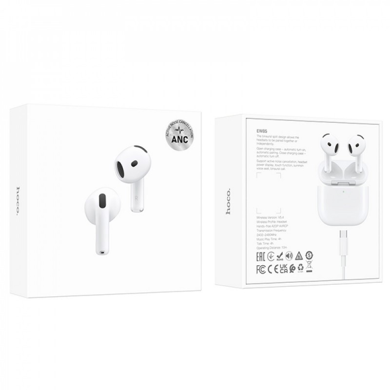 Бездротові навушники Hoco EW85 TWS — це сучасні навушники з підтримкою Bluetooth 5.4 і функцією активного шумозаглушення, що забезпечують високу якість звуку. Виготовлені з міцного ABS-пластику, вони відрізняються легкістю і компактністю, що робить їх ідеальними для повсякденного використання.