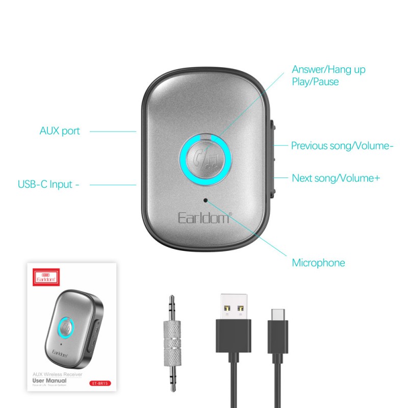 Цей Bluetooth аудіоприймач Earldom ET-BR15 виконаний з міцного матеріалу ABS та оснащений передовою технологією Bluetooth версії 5.3. Пристрій підтримує підключення через USB-DC5V та має інтерфейс зарядки USB-C. Він ідеально підходить для використання з персональними комп'ютерами, системами Android, смартфонами на базі iOS, планшетами та іншими пристроями з підтримкою Bluetooth, а також з аудіопристроями, що мають інтерфейси аудіовходу.