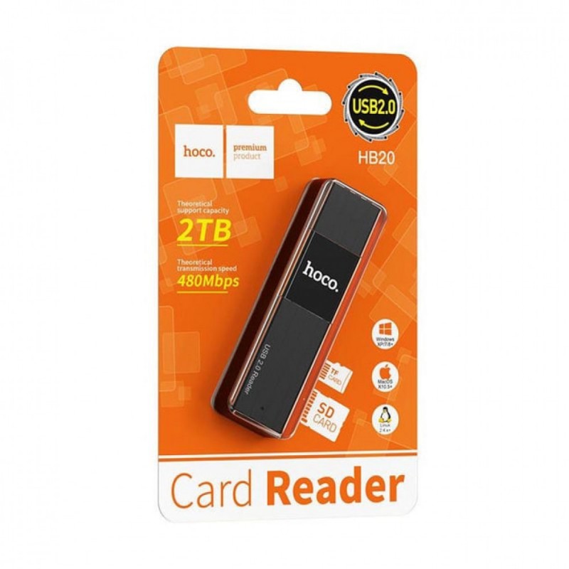 Читальний модуль Hoco HB20 незамінний в офісах, домашніх умовах та для мандрівників. З його допомогою можна легко і швидко переносити дані з карт пам'яті на комп'ютери, ноутбуки та навіть інші пристрої, такі як ігрові консолі чи камери. Він сумісний з різними операційними системами, включаючи Windows та Mac OS, що забезпечує універсальність використання.