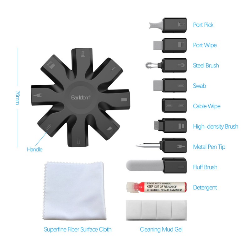 Набір для чищення Earldom ET-T07 — це універсальний інструмент для підтримання чистоти ваших пристроїв. Він допомагає ефективно видаляти пил та бруд, продовжуючи термін служби техніки.