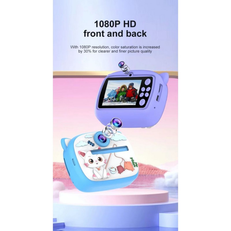 Ця дитяча камера з моментальним друком та екраном 2,4 дюйма — ідеальний подарунок для юних фотографів. Вона дозволяє не тільки знімати фото і відео, але й моментально друкувати знімки, як у справжньому фотопринтері. Яскравий екран і безпечні матеріали роблять її придатною для дітей.