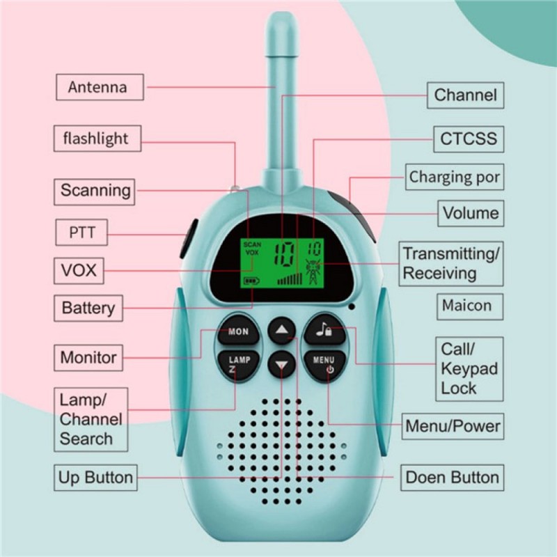 Увімкніть рацію, оберіть канал зв'язку і почніть спілкування. Просте управління робить її доступною для дітей молодшого віку.