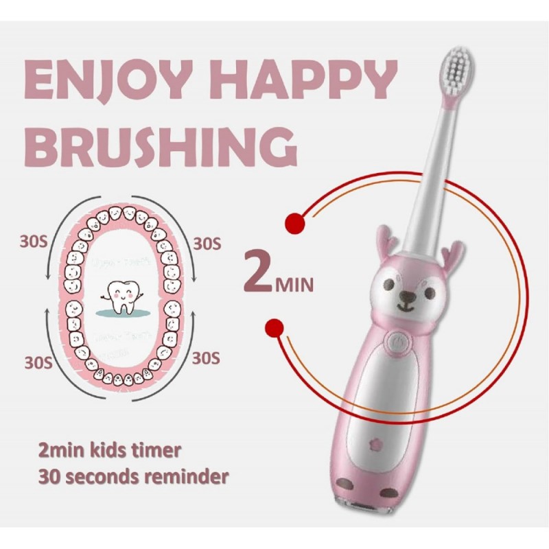 Веселий дизайн оленяти привертає дітей і робить процес чищення зубів захопливим. Унікальна маленька щітка з 3D вигнутими м'якими щетинками забезпечує комфортне та ефективне чищення, ідеально підходить для дитячих ясен і маленьких ротиків.