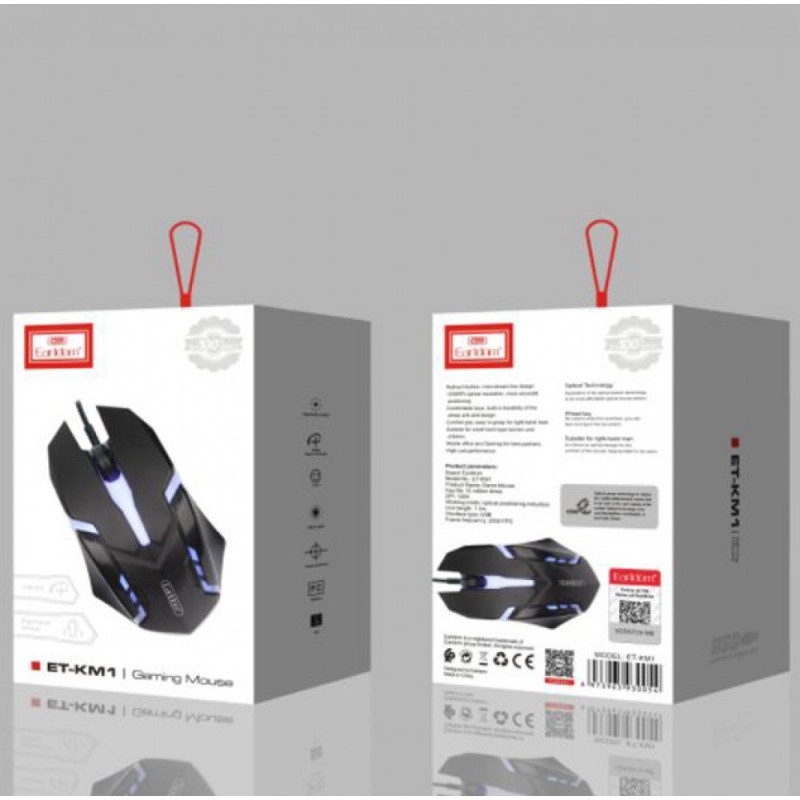 Комп'ютерна миша Earldom ET-KM1 — це проводний пристрій з роздільною здатністю оптичного сенсора 1200 DPI, ідеально підходить для тривалої роботи. Миша оснащена дихаючою RGB-підсвіткою та має ергономічний дизайн, що забезпечує зручність використання для правої руки. Високоточна оптична технологія дозволяє ефективно працювати на будь-якій поверхні, що робить цю мишу універсальним рішенням для комп'ютерів.