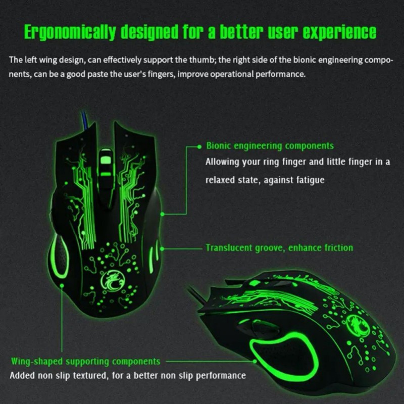 Провідна ігрова миша X9 допомагає користувачам досягти високої продуктивності в іграх і офісних завданнях. Регульована чутливість DPI дозволяє легко налаштовувати швидкість курсора, що особливо корисно в динамічних іграх. Ергономічний дизайн знижує втомленість рук, а світлодіодне підсвічування створює приємну атмосферу.