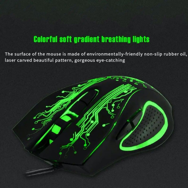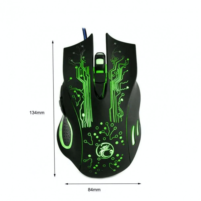 Провідна ігрова миша X9 виготовлена з використанням високоякісного ABS та сучасного ігрового чіпа, що забезпечує довговічність і надійність. Унікальний дизайн з лазерним гравіюванням радіюму та ергономічно розроблена форма роблять її привабливою та зручною для тривалого використання. Миша оснащена автоматичною дихальною LED-лампою з сімома кольоровими переходами та пропонує чотирирівневу регулювання DPI (800/1200/1600/2400), що дозволяє адаптуватися до різних ігрових умов.