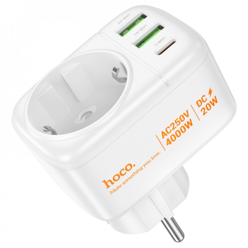 Підключіть фільтр живлення Hoco AC26 до електромережі, потім вставте потрібний пристрій в однотипну розетку або підключіть до USB-виходів. Переконайтеся, що загальне споживання пристроїв не перевищує 4000 Вт, і насолоджуйтеся зручністю безпечної зарядки.