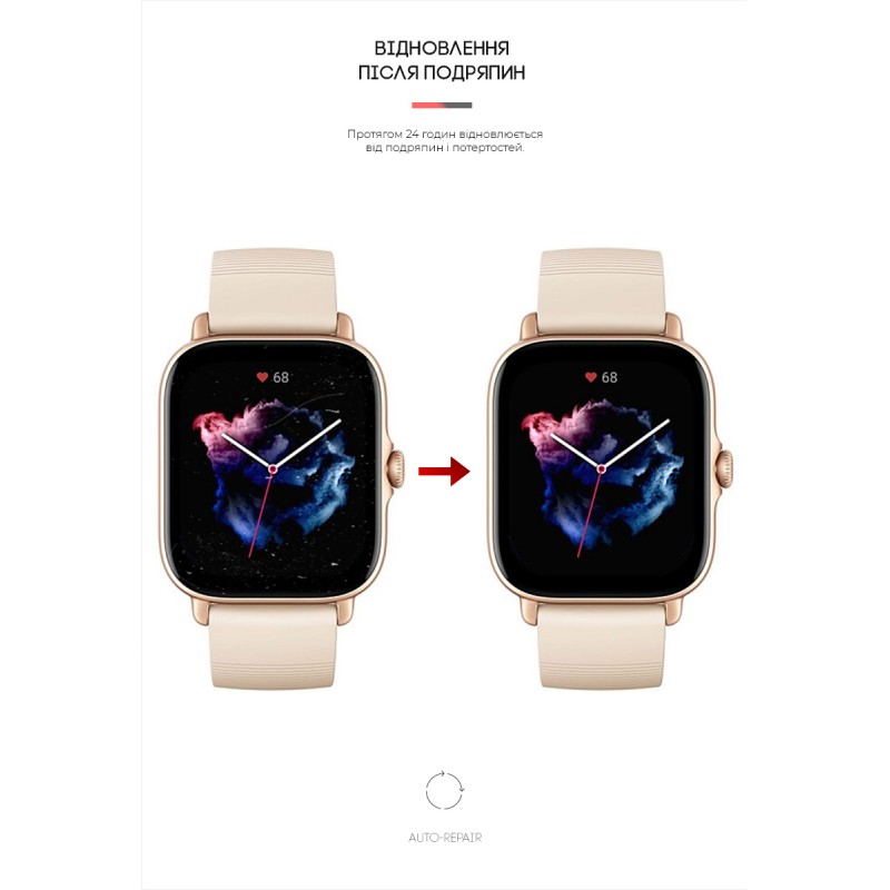 Використовується для захисту екрана розумних годинників Amazfit GTS 3, запобігаючи механічним пошкодженням у процесі експлуатації.