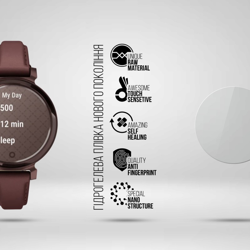 Плівка використовується для розумних годинників Garmin Lily, забезпечуючи захист екрану від зовнішніх впливів.