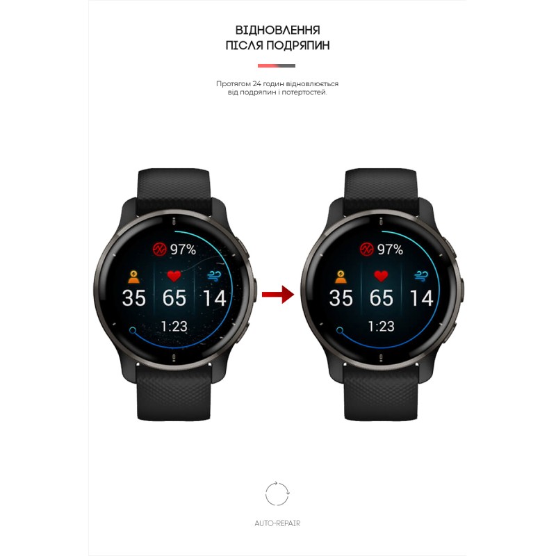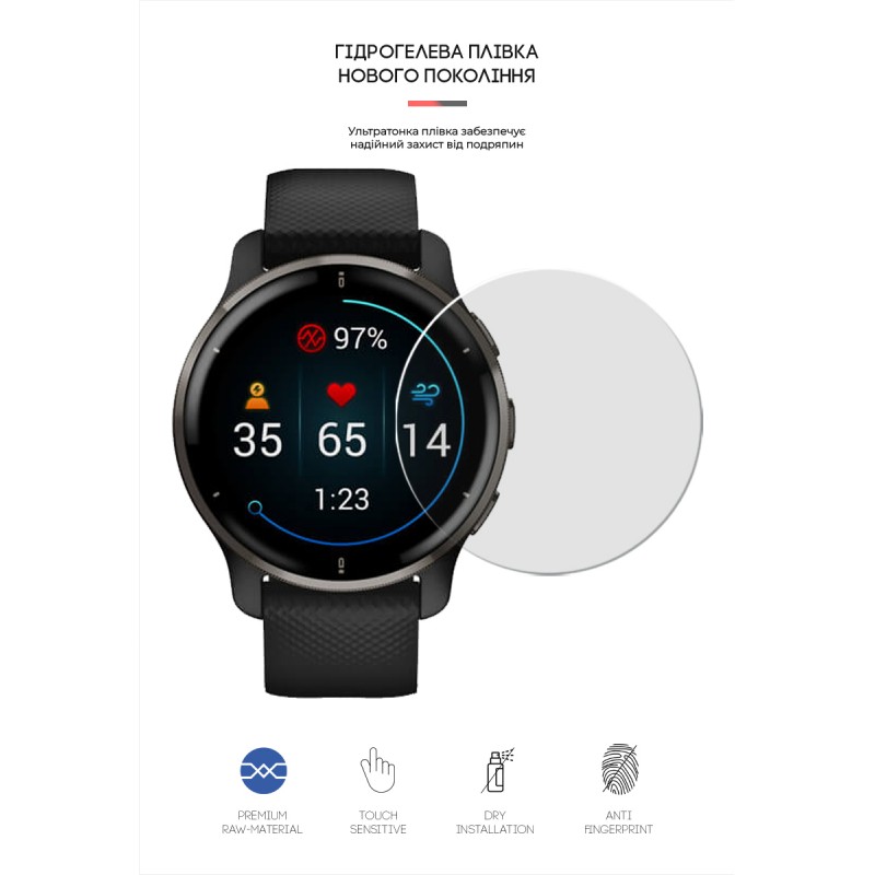 Ця плівка призначена для використання з розумними годинниками Garmin Venu 2 Plus, забезпечуючи їх екрану надійний захист.