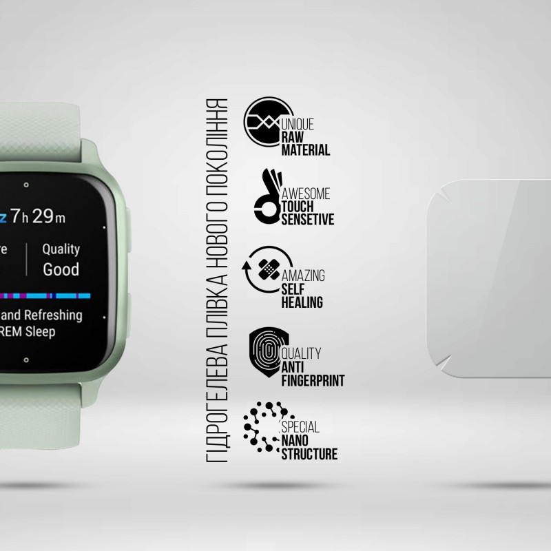 Ця плівка застосовується для захисту екранів смарт-годинників Garmin Venu Sq 2. Вона ідеально підходить для щоденного використання, занять спортом і активного відпочинку.