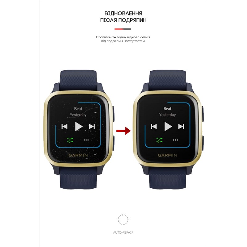 Плівка застосовується для захисту екранів смарт-годинників Garmin Venu Sq Music, що робить її ідеальною для повсякденного використання і під час занять спортом.