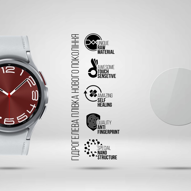 Плівка застосовується для захисту екранів розумних годинників Samsung Galaxy Watch 6 Classic 47mm від зовнішніх впливів.