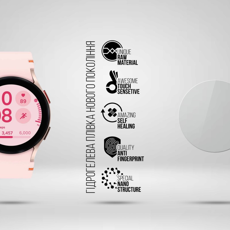 Ця плівка застосовується для захисту екрану розумних годинників Samsung Galaxy Watch FE від механічних пошкоджень і забруднень.
