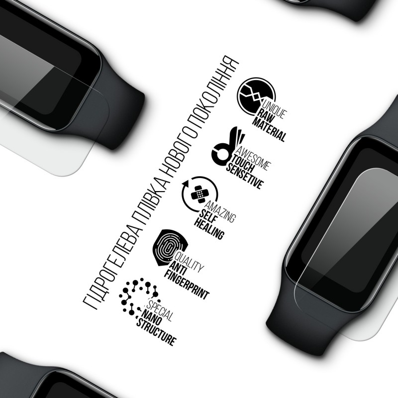 Плівка захищає екран пристрою від подряпин, пилу та відбитків пальців, продовжуючи термін служби вашого фітнес-браслета.