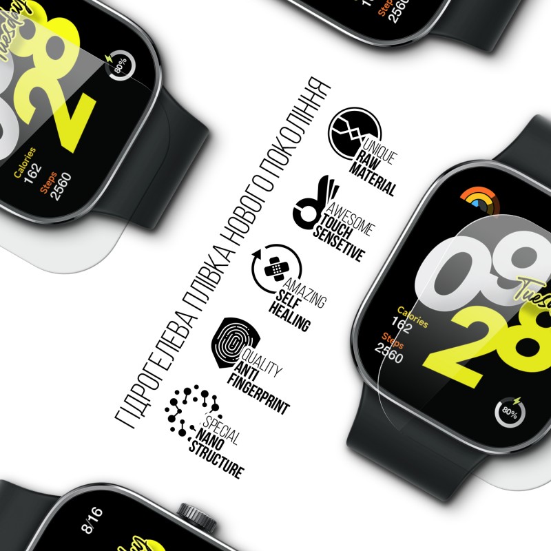 Ці плівки призначені для використання з розумними годинниками Xiaomi Redmi Watch 4, забезпечуючи їх захист у повсякденному житті та при активних заняттях.