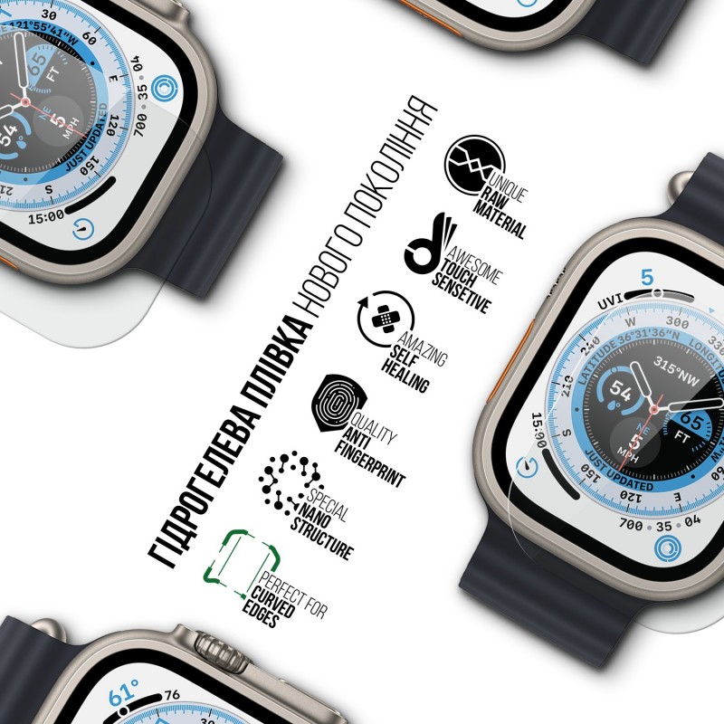 Ця плівка призначена для використання на Apple Watch Ultra 2 та Ultra, щоб зберегти їх екран в ідеальному стані.