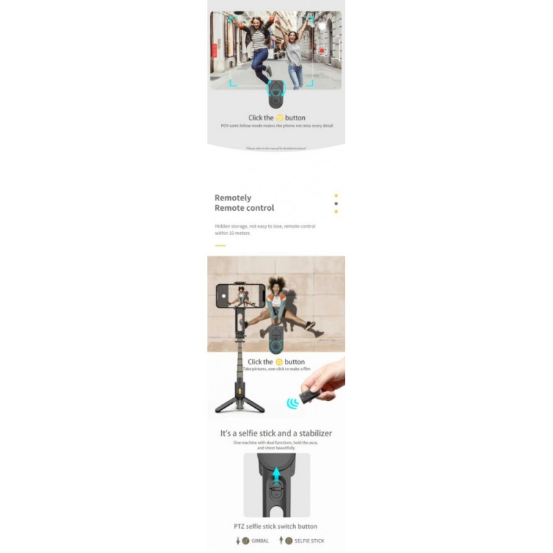 Гімбальний стабілізатор для телефону Veron 0.7м L18 — ідеальне рішення для створення плавних і професійних відеороликів. З ним ви зможете легко знімати відео без тремтіння і зміщень, завдяки високоточному механізму стабілізації. Легкий і компактний, цей стабілізатор підходить для використання як на вулиці, так і в приміщеннях. Підтримує безліч режимів зйомки і сумісний з усіма смартфонами. Покращте якість ваших відео з гімбальним стабілізатором Veron L18!