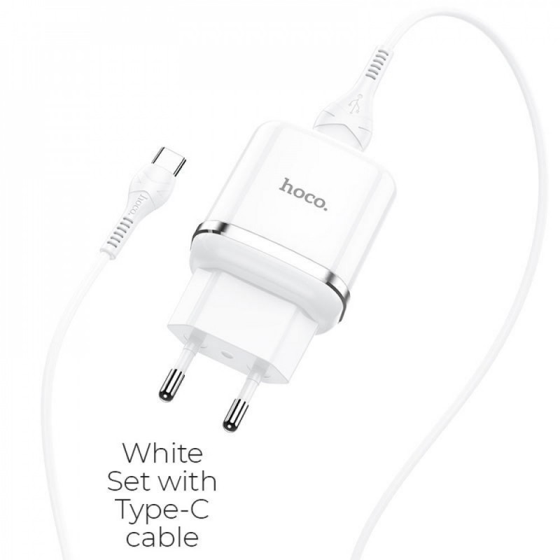 Мережевий зарядний пристрій Hoco N3 з кабелем USB C 1м, білий