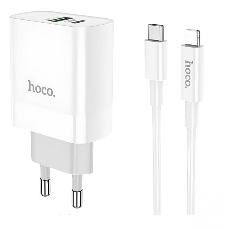 Мережевий зарядний пристрій Hoco C80A 20W, білий, з кабелем C to Lightning 1м