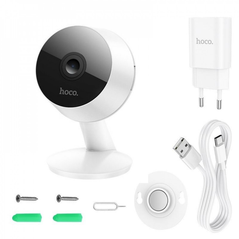 З компактними розмірами 55x65.2x88 мм та вагою всього 68 г, камера Hoco D3 легко впишеться в будь-який інтер'єр. Пластиковий корпус і купол гарантують надійний захист внутрішніх компонентів.
