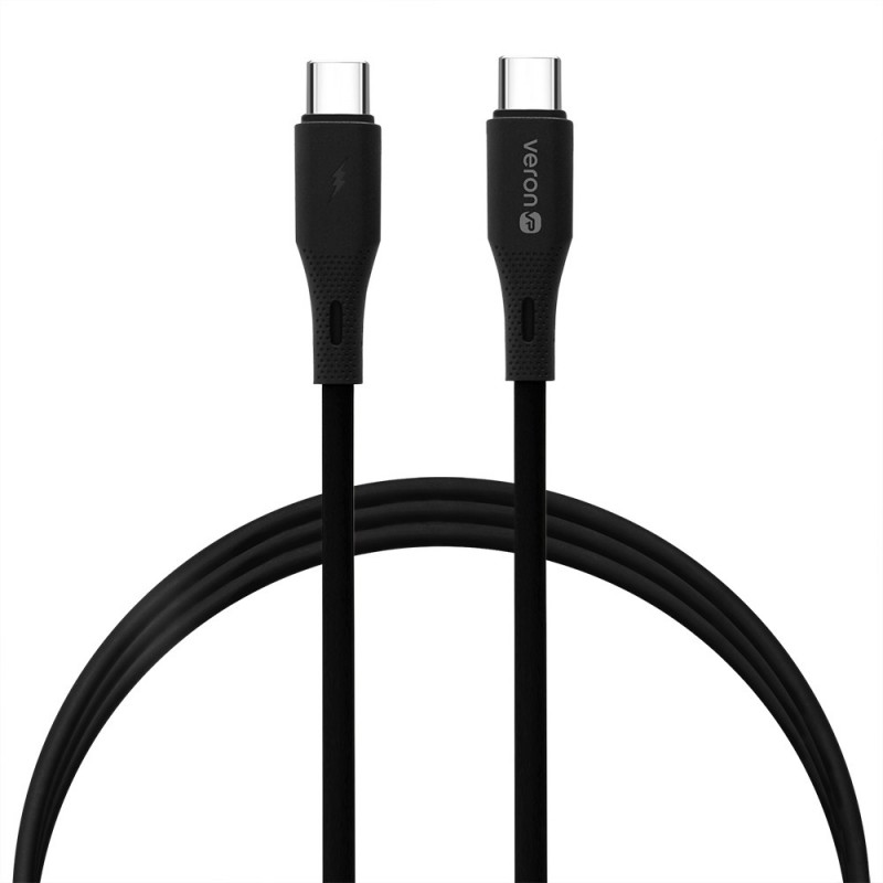 Кабель для зарядки та передачі даних Veron X2 Silicone USB-C to USB-C 60W, 2м, нейлоновий, чорний