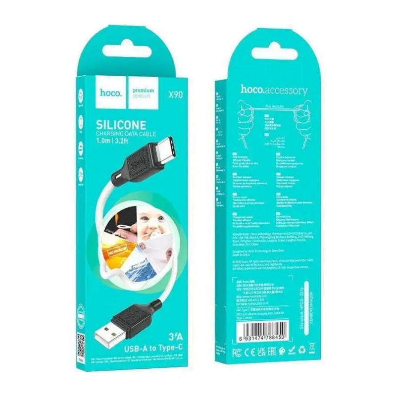 Кабель USB C Hoco X90 виготовлений з високоякісного силікону, який забезпечує гнучкість і довговічність. Завдяки підтримці зарядки струмом до 3А, він гарантує швидку передачу енергії для ваших пристроїв. Зручна довжина в 1 метр ідеально підходить як для дому, так і для використання в автомобілі. Легка вага кабелю (всього 24 г) робить його комфортним для перенесення.