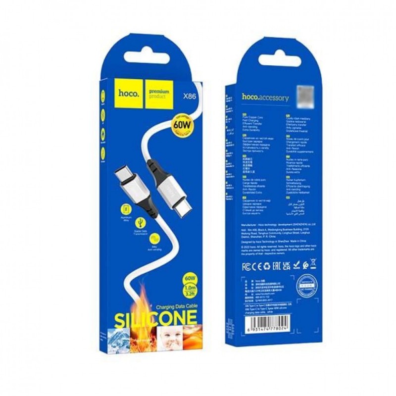 Кабель USB-C to C Hoco X86, 60W, 1м, білий