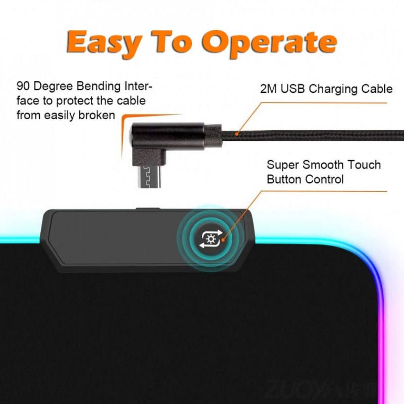 Просто розмістіть килимок на робочій поверхні, підключіть його до USB-порту для активації підсвітки, і насолоджуйтеся комфортною роботою або грою.