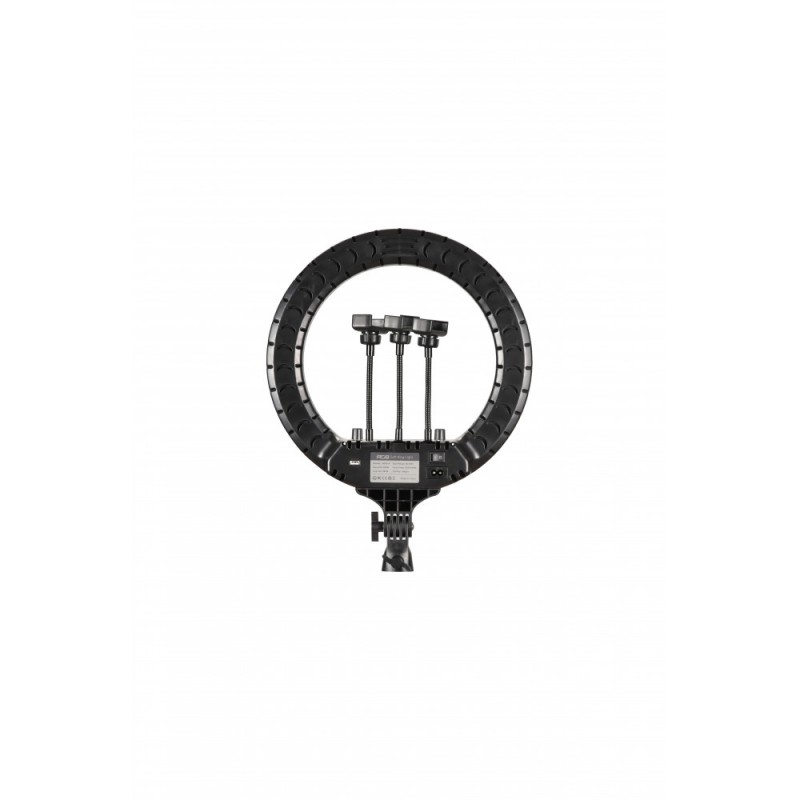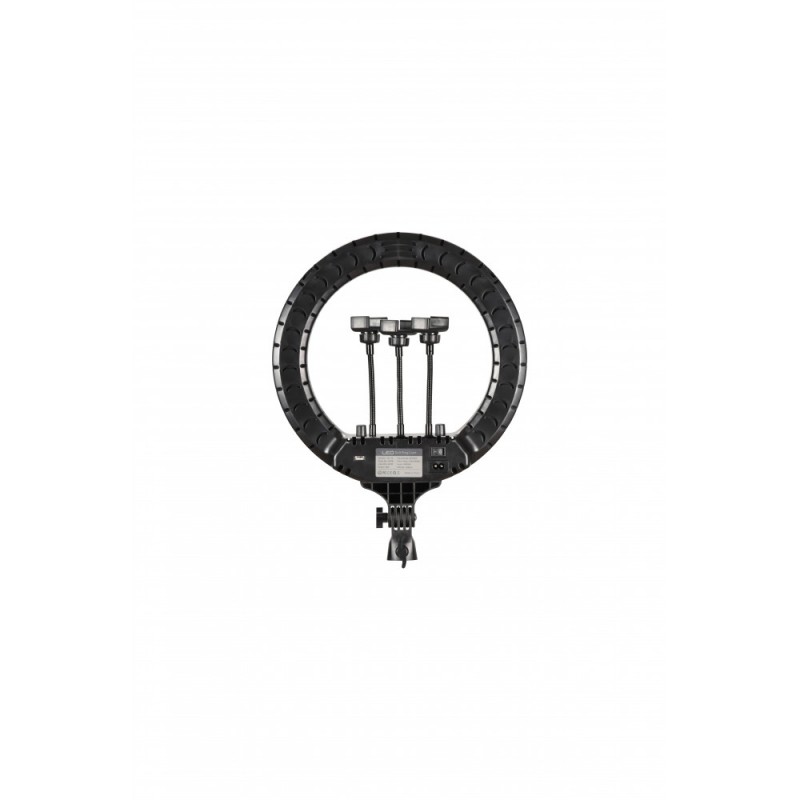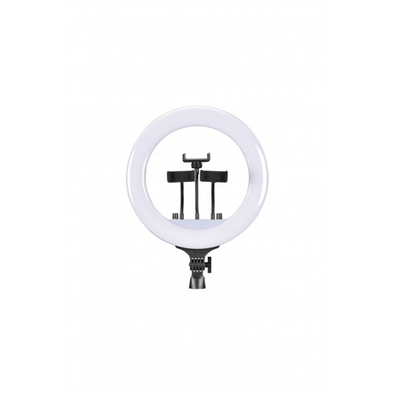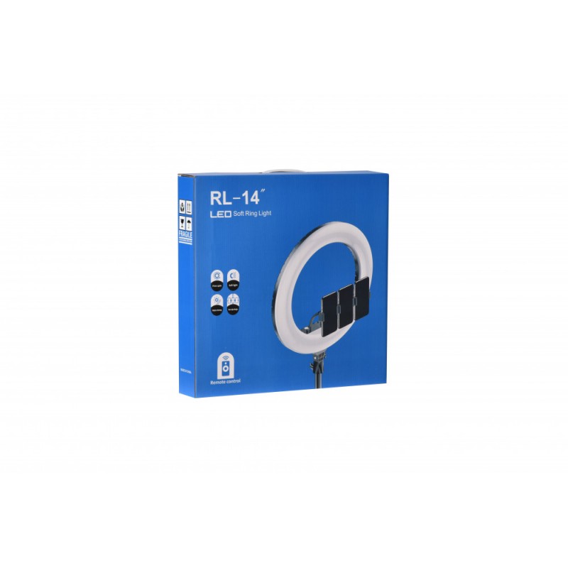 Кільцева лампа LED RL-14 забезпечує рівномірне освітлення без мерехтіння, з діаметром кільця 35 см, що достатньо для якісного освітлення об'єктів. Лампа працює від мережі 220 В і не нагрівається навіть при тривалій роботі.