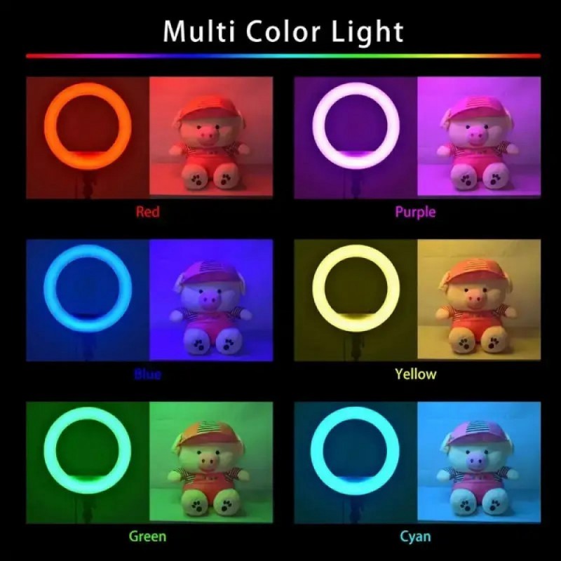 Кільцева LED лампа RL-14 RGB вирішує проблему недостатнього освітлення при зйомці або нанесенні макіяжу. Вона забезпечує рівномірне освітлення без тіней, що дозволяє досягти професійного результату.