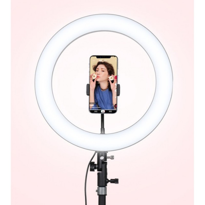 Кільцева LED лампа RL-14 RGB Original — це сучасний освітлювальний пристрій, який забезпечує рівномірне та м'яке освітлення. Лампа оснащена RGB-світлодіодами, які дозволяють змінювати колір освітлення залежно від ваших потреб.