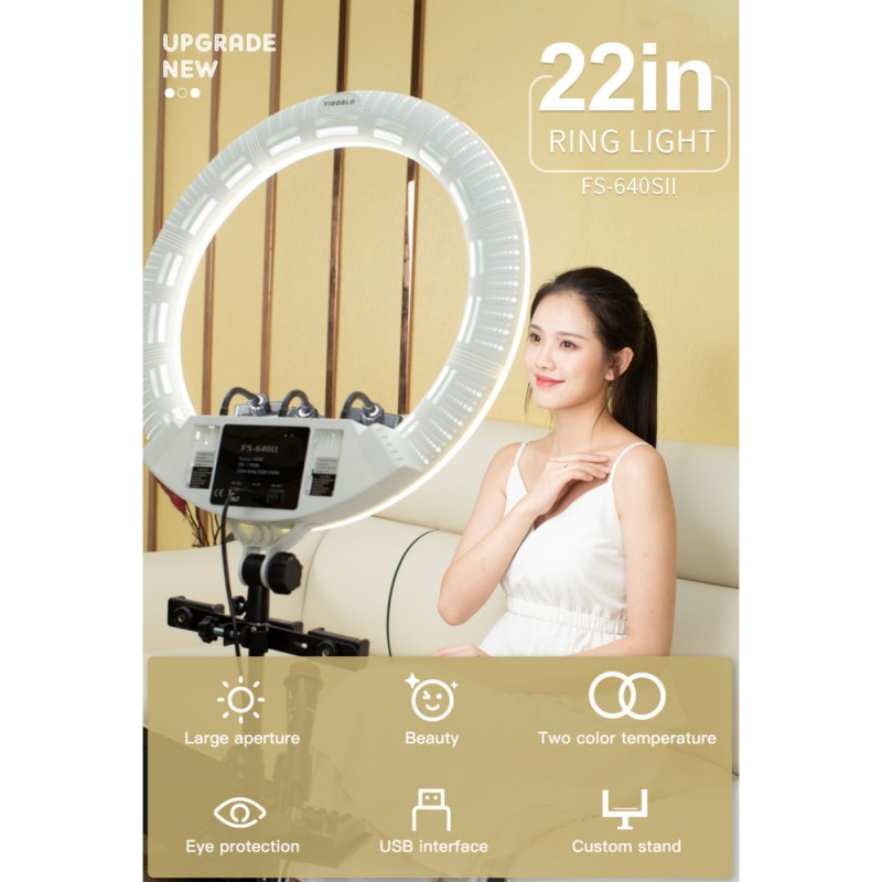 Відкрийте для себе нові горизонти у світі фотографії та відеозйомки з кільцевою LED лампою Veron FS-640 II. З діаметром 55 см і потужністю 100W, ця лампа пропонує ідеальну яскравість для створення величних знімків і відеороликів.