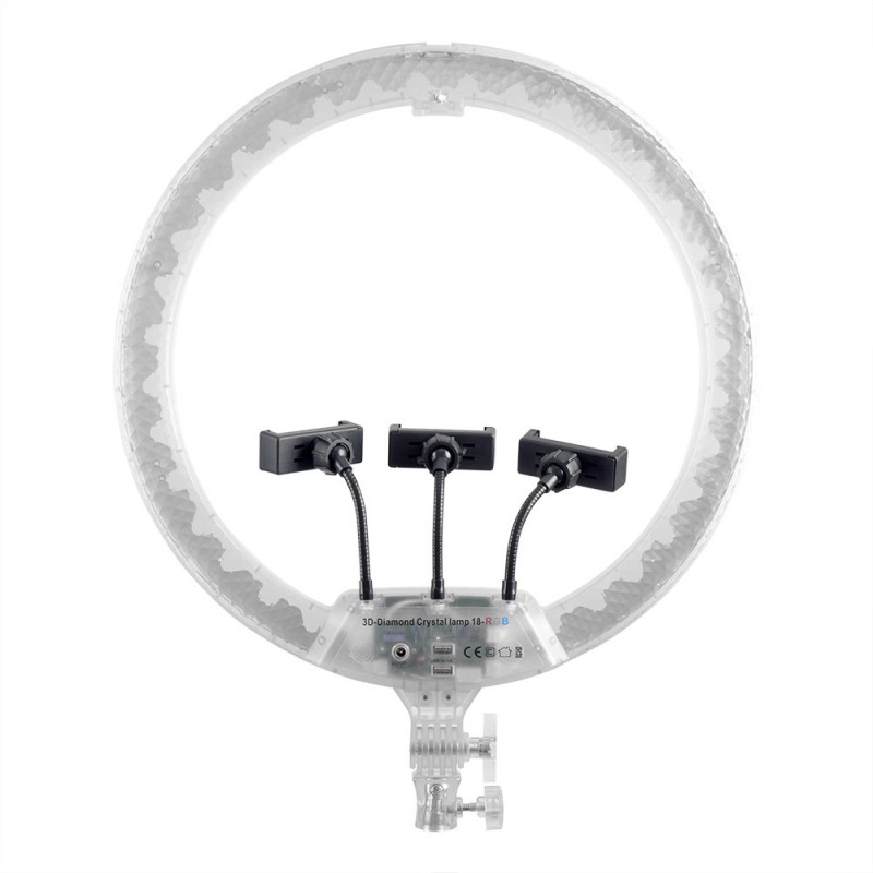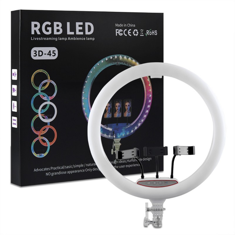 Кільцева LED лампа Veron RGB 45 см RD-45 - це ідеальний вибір для фотографії, блогінгу, відеоблогів, онлайн-уроків та інших світлових сценаріїв. Забезпечує рівномірне та м'яке освітлення без затінення. 45 см в діаметрі, ця лампа має багатократно регульовану яскравість та кольорові режими RGB для виконання різних творчих завдань. Завдяки компактному та легкому дизайну, лампу можна легко переносити та встановлювати в будь-якому місці.