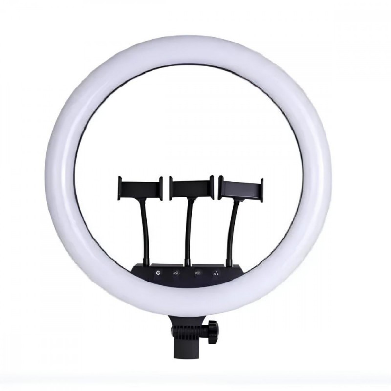Кільцева лампа HQ-18 потужністю 55 Вт ідеально підійде для створення б'юті-фотографій та відеоконтенту, візажистів, перукарів та салонів краси. Вона забезпечує правильне, рівномірне заповнення обличчя під час зйомки. Колірна температура регулюється і дозволяє вибрати необхідний рівень температури світла. Яскравість регулюється від 0 до 100%. 3 температурні режими (теплий (3000-3500K), холодний(6000-6500K), нейтральний(5000-5500K)). Нахил лампи регулюється на 180°. Дальність освітлення 10м. Комплект містить: лампу, шнур живлення, тримач для смартфона, сумку.