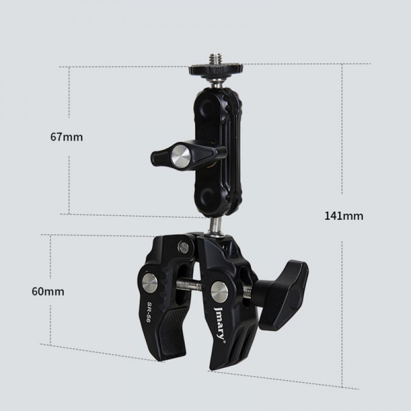 Кріплення краб Veron SR-56 — універсальне та надійне рішення для кріплення LED ламп, камер та фотоапаратів, включаючи пристрої GoPro. Воно забезпечує простоту установки та стійкість в будь-яких умовах, дозволяючи зафіксувати обладнання на різноманітних поверхнях. Ідеально підходить для зйомок в студії та на відкритому повітрі.