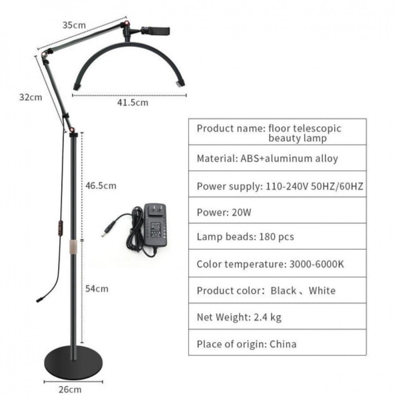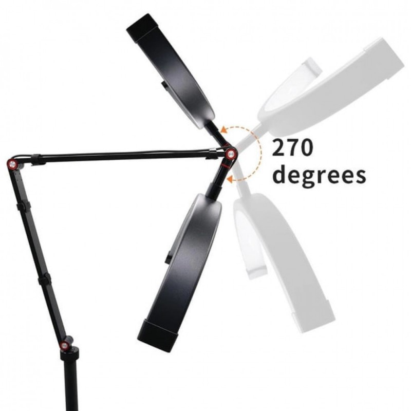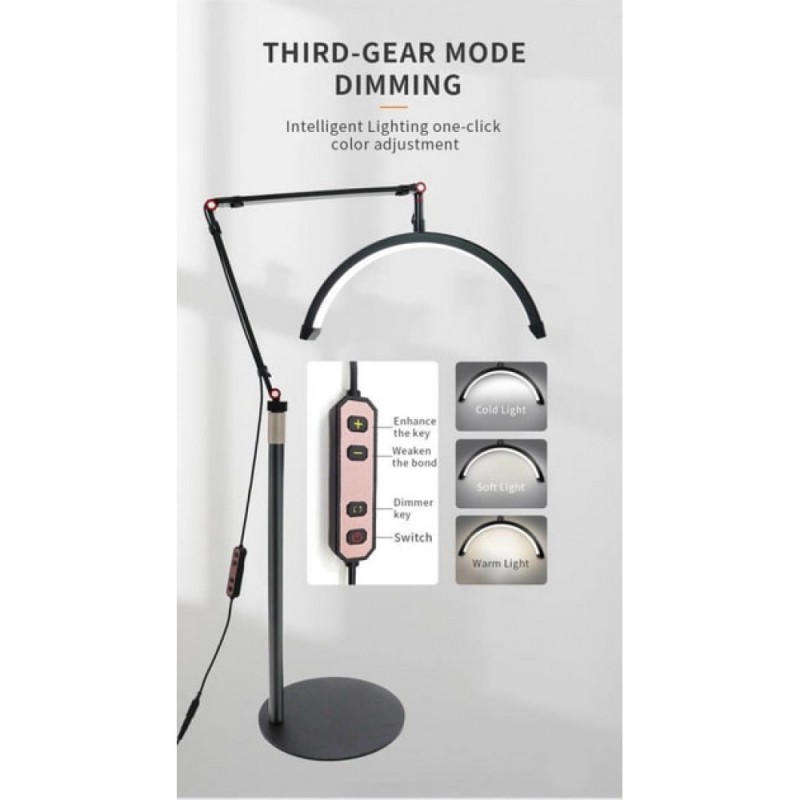 Професійна підлогова LED лампа Censreal HD-M2X з унікальною формою світильника у вигляді дуги призначена для використання в косметології, відеооглядах та інших областях, де потрібне якісне освітлення без тіней. Лампа має регульоване кріплення та можливість зміни кута освітлення.