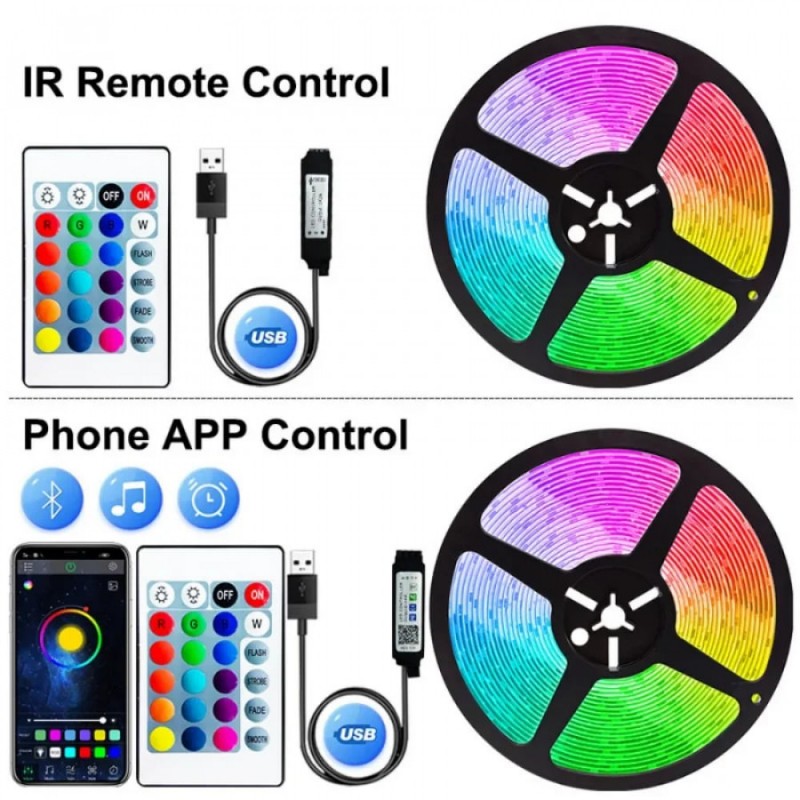 Розумна світлодіодна LED стрічка RGB 2835 Veron 10м, 5V, з пультом керування та можливістю підключення до телефону
