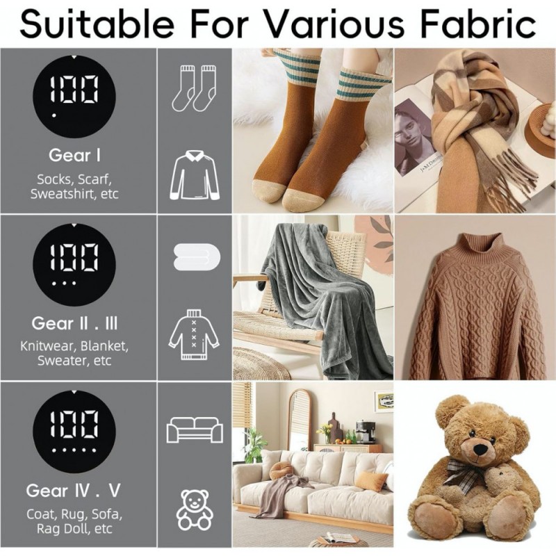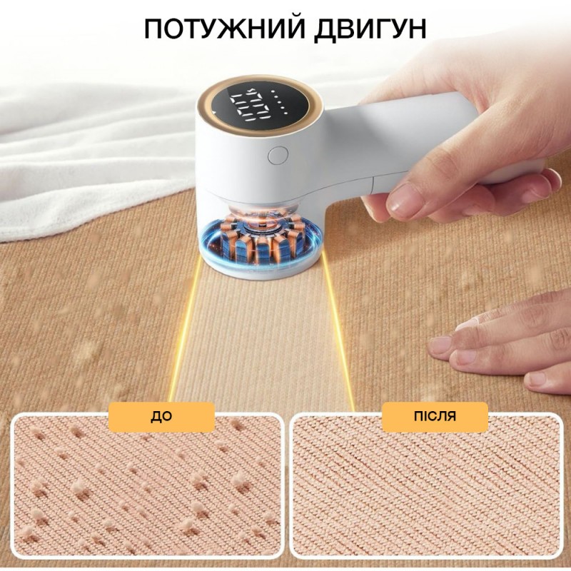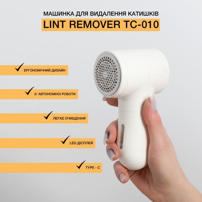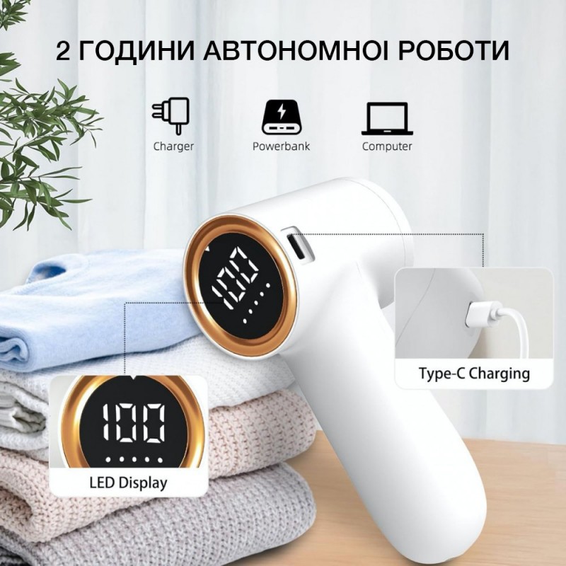 Машинка для видалення катишків TC-010 - це ефективний пристрій для догляду за одягом, оснащений LED дисплеєм і п'ятьма режимами швидкості.
