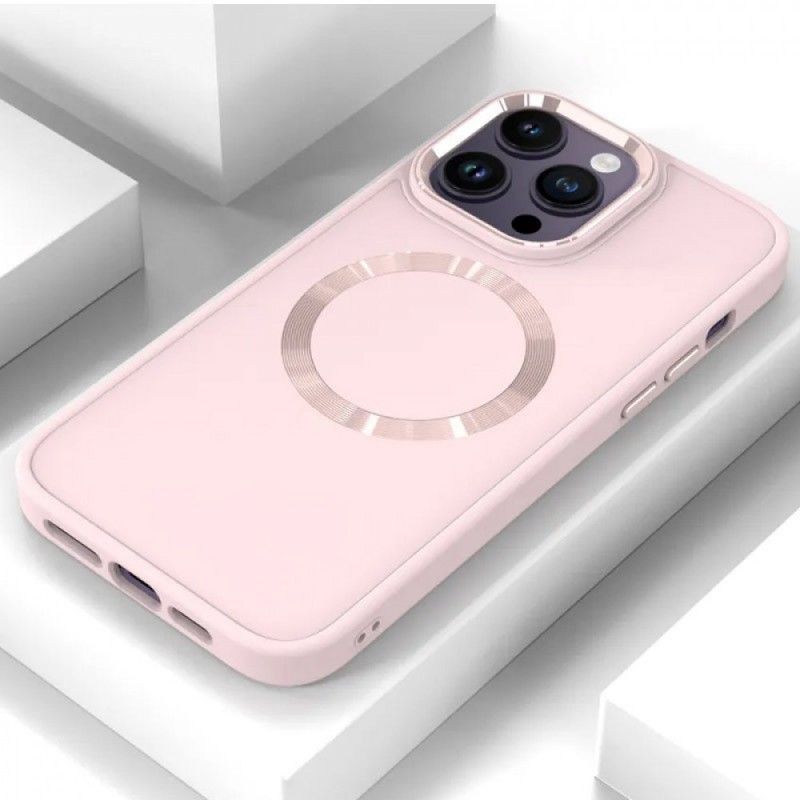 Цей рожевий чохол для iPhone 15 Pro поєднує в собі елегантність і захист. Його металевий стиль і технологія MagSafe роблять його ідеальним вибором для тих, хто цінує як стиль, так і функціональність.