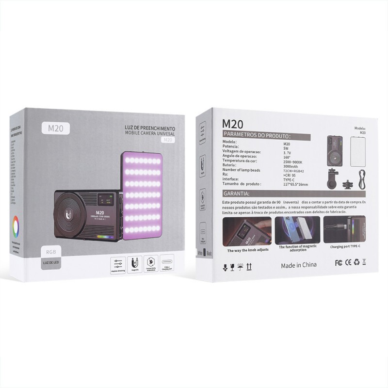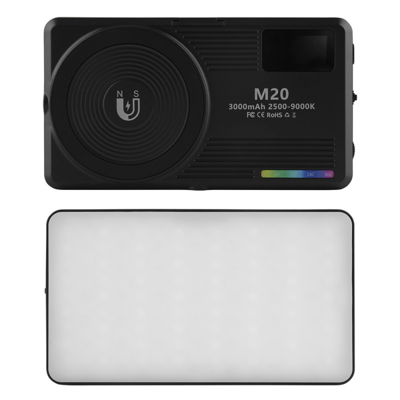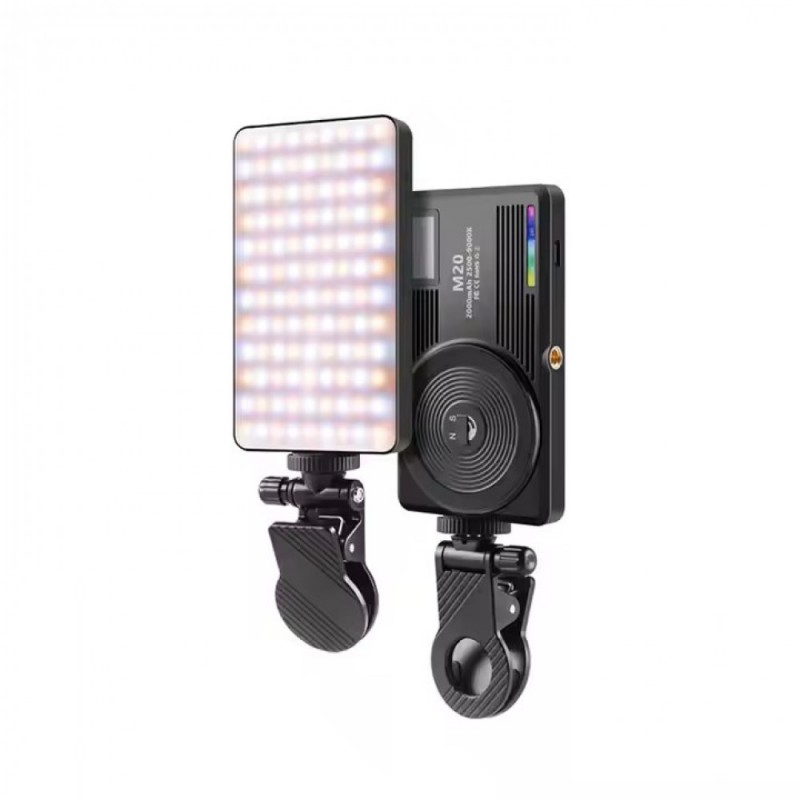 Накамерне відеосвітло LED RGB Weeylite RGB M20 — це портативне освітлення для фотографів та відеографів, що забезпечує широкий спектр колірних рішень завдяки RGB-діодам. Пристрій відрізняється компактним дизайном та регульованою яскравістю, що дозволяє налаштувати освітлення під будь-які умови зйомки. Ідеально підходить для креативного освітлення та додавання спеціальних світлових ефектів.