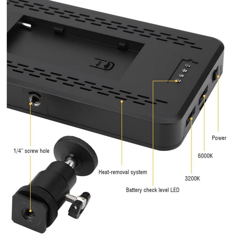 Встановіть накамерний відеосвіт на камеру або штатив. Підключіть сумісний акумулятор серії Sony NP-F. Налаштуйте колірну температуру і яскравість на ваш розсуд за допомогою вбудованих регуляторів. Увімкніть світло і почніть зйомку, насолоджуючись якісним освітленням!