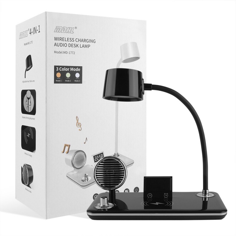 Настільна лампа з бездротовою зарядкою MD-1772, сенсорне управління, вбудований будильник
